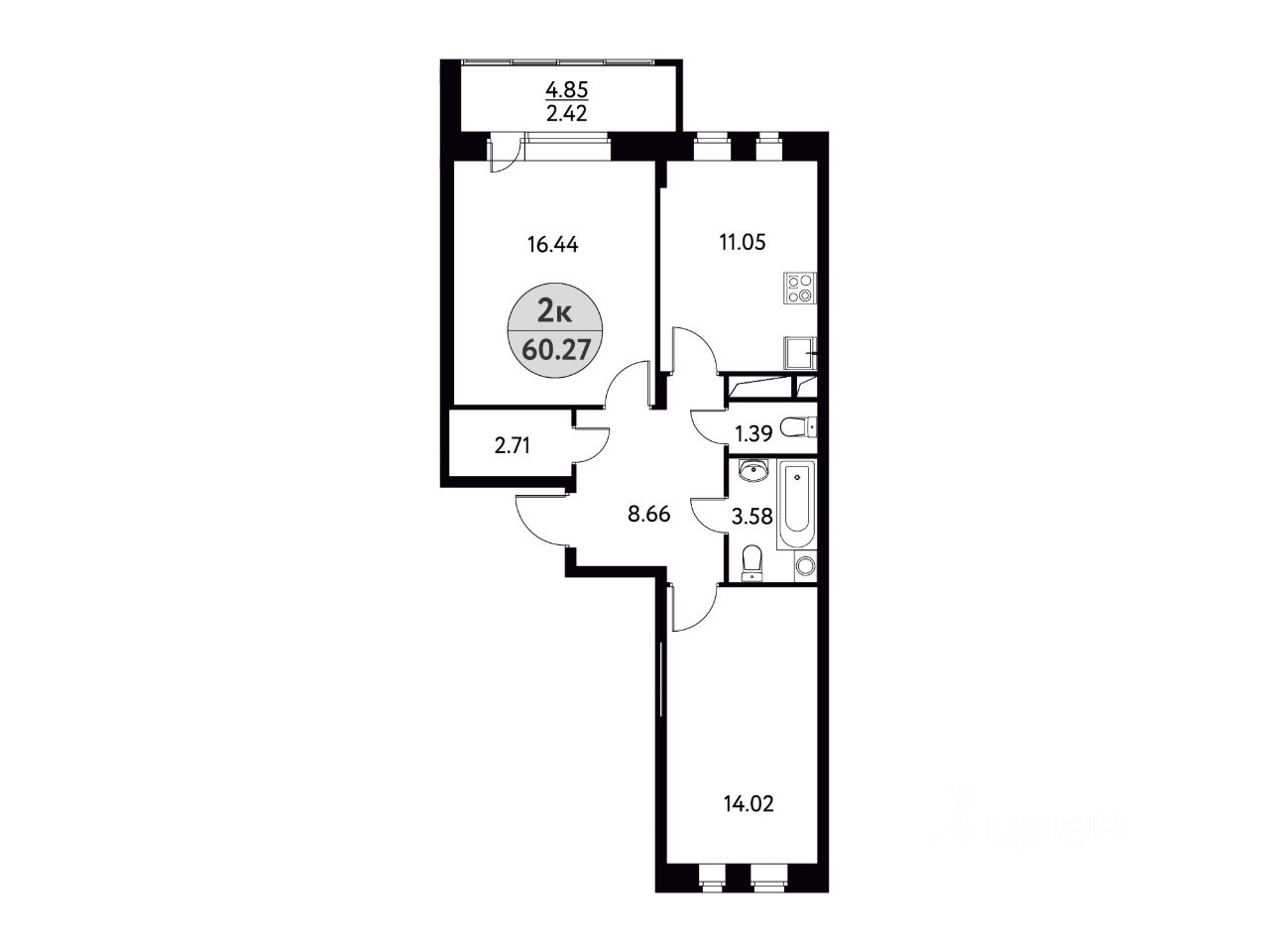 Общая площадь60,27 м2