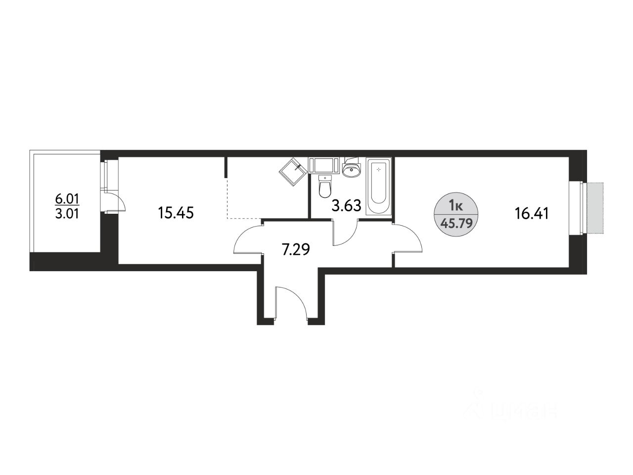 Общая площадь45,79 м2
