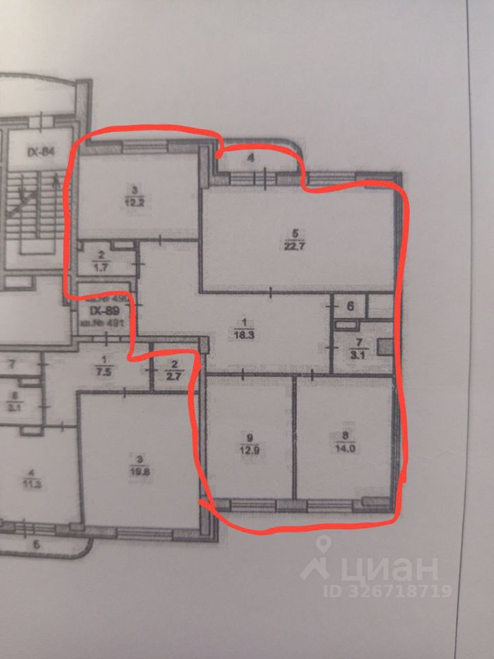 - Комнаты 22,7 кв.м., 14 кв.м. и 12,9 кв.м.