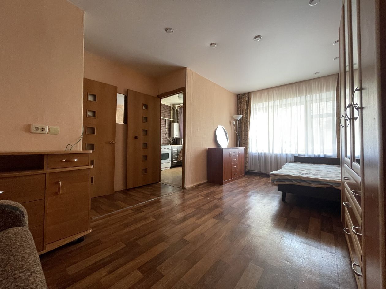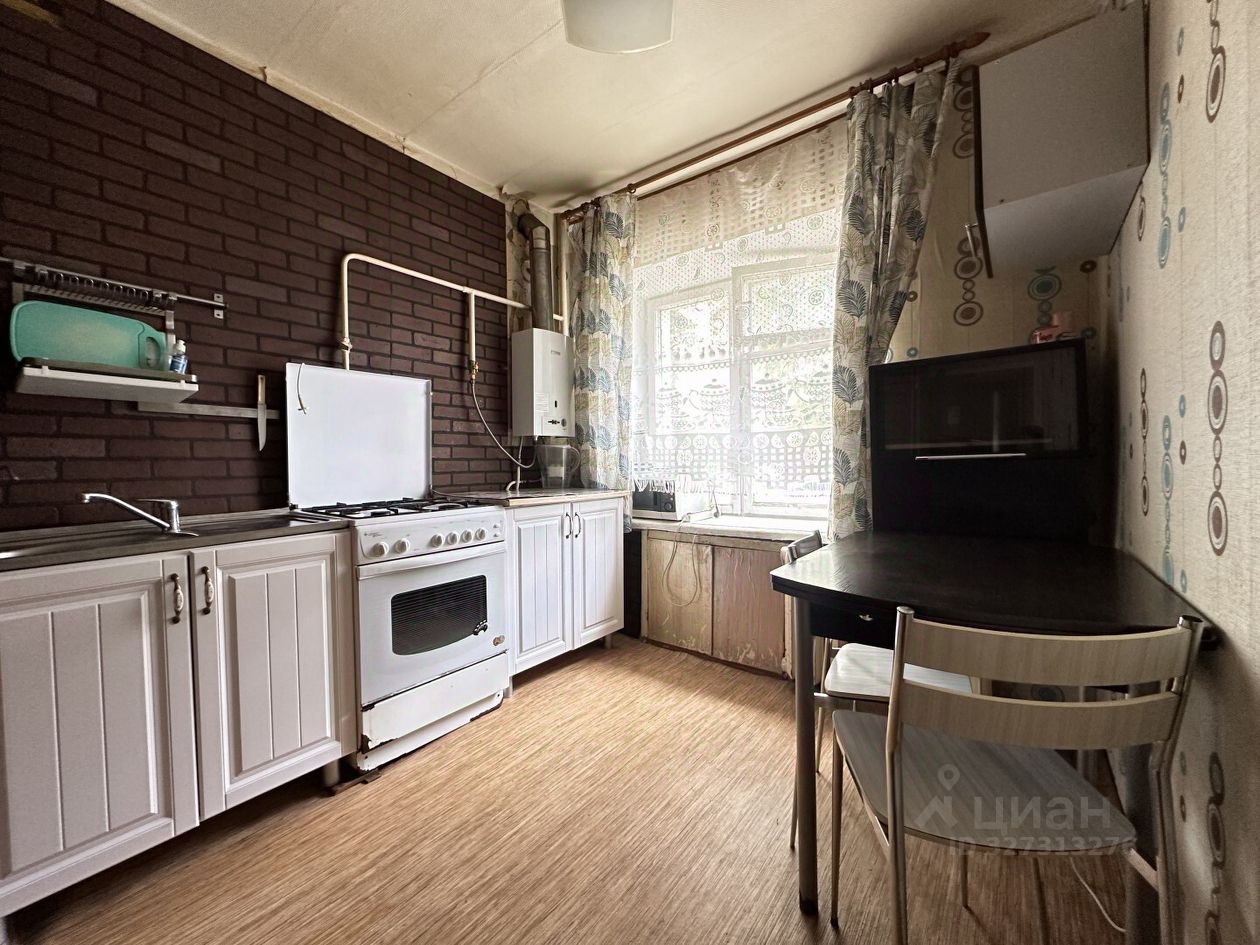 Квартира расположена на 1 этаже 4-х этажного дома. В квартире выполнен ремонт, установлена новая газовая колонка, и есть все необходимое для проживания (кухонный гарнитур столовой группой, холодильник, спальня с гардеробной, двухъярусная кровать в детской, места для хранения, стеллаж, в ванной установлена стиральная машина).